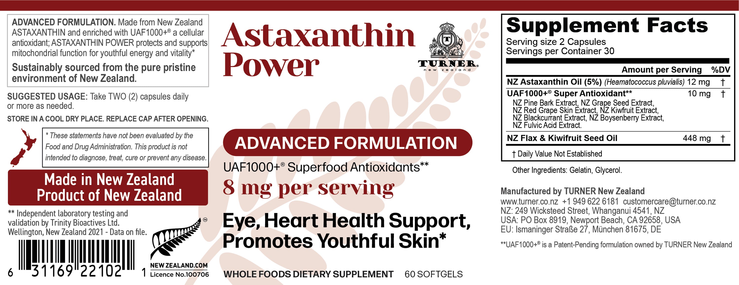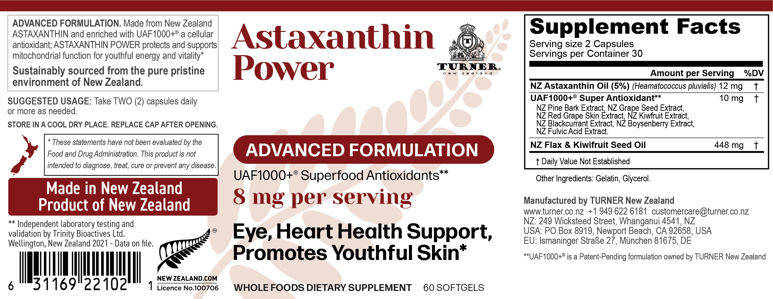 - Made from New Zealand astaxanthin; enriched with UAF1000+®