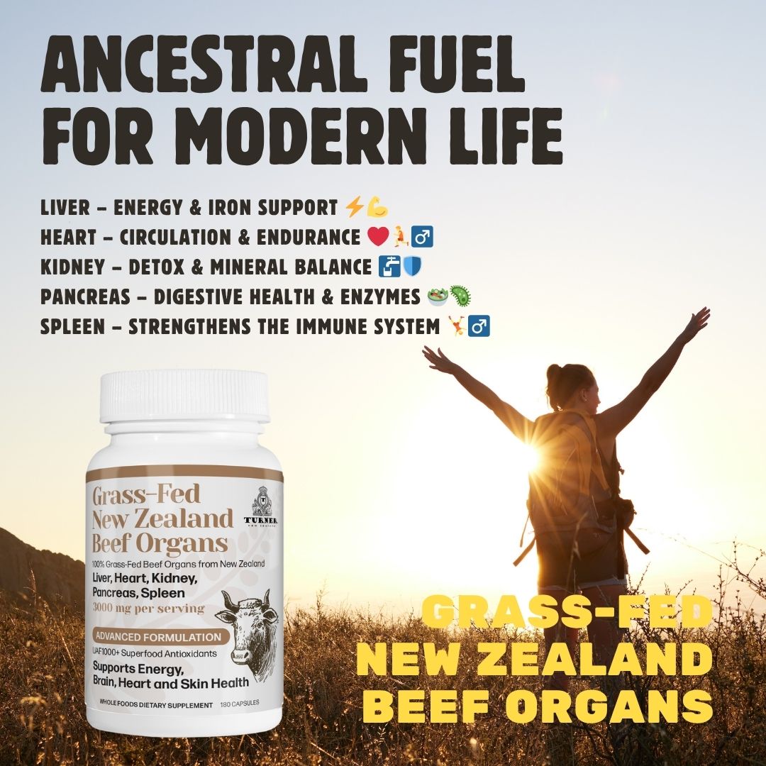 The liver and kidney are the body’s primary detox and metabolic organs. TURNER Beef Organs supplies highly bioavailable cofactors that nourish natural detox pathways, support hormonal balance, and sustain efficient metabolism and nutrient processing — promoting long-term wellness and internal balance.