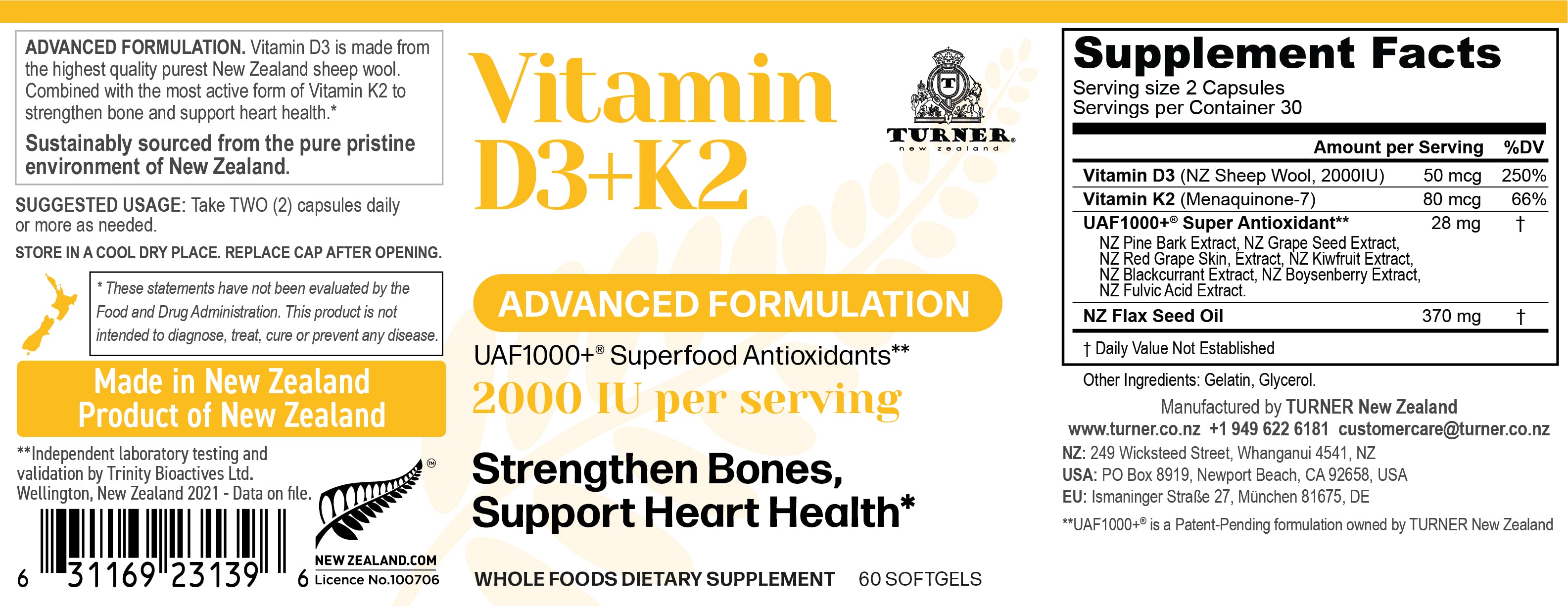 - 2000 IU Vitamin D3 from New Zealand Sheep's Wool Lanolin