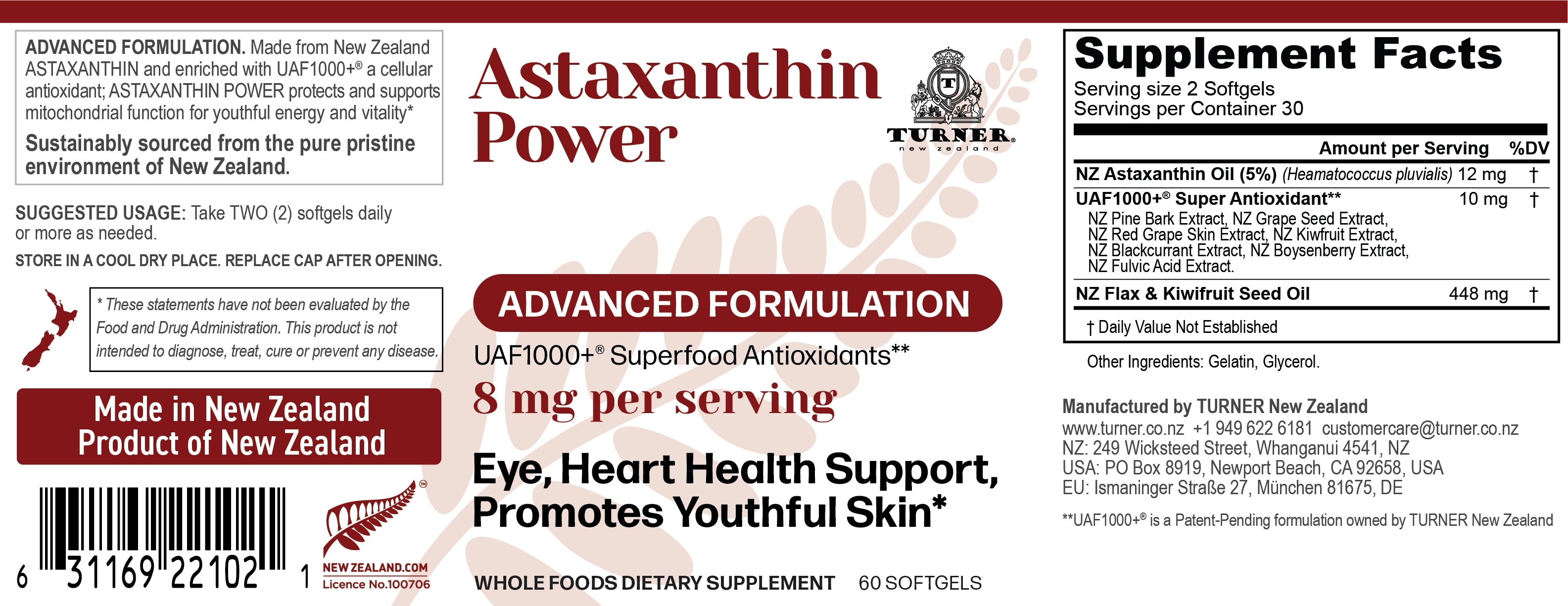 - Made from New Zealand astaxanthin; enriched with UAF1000+®