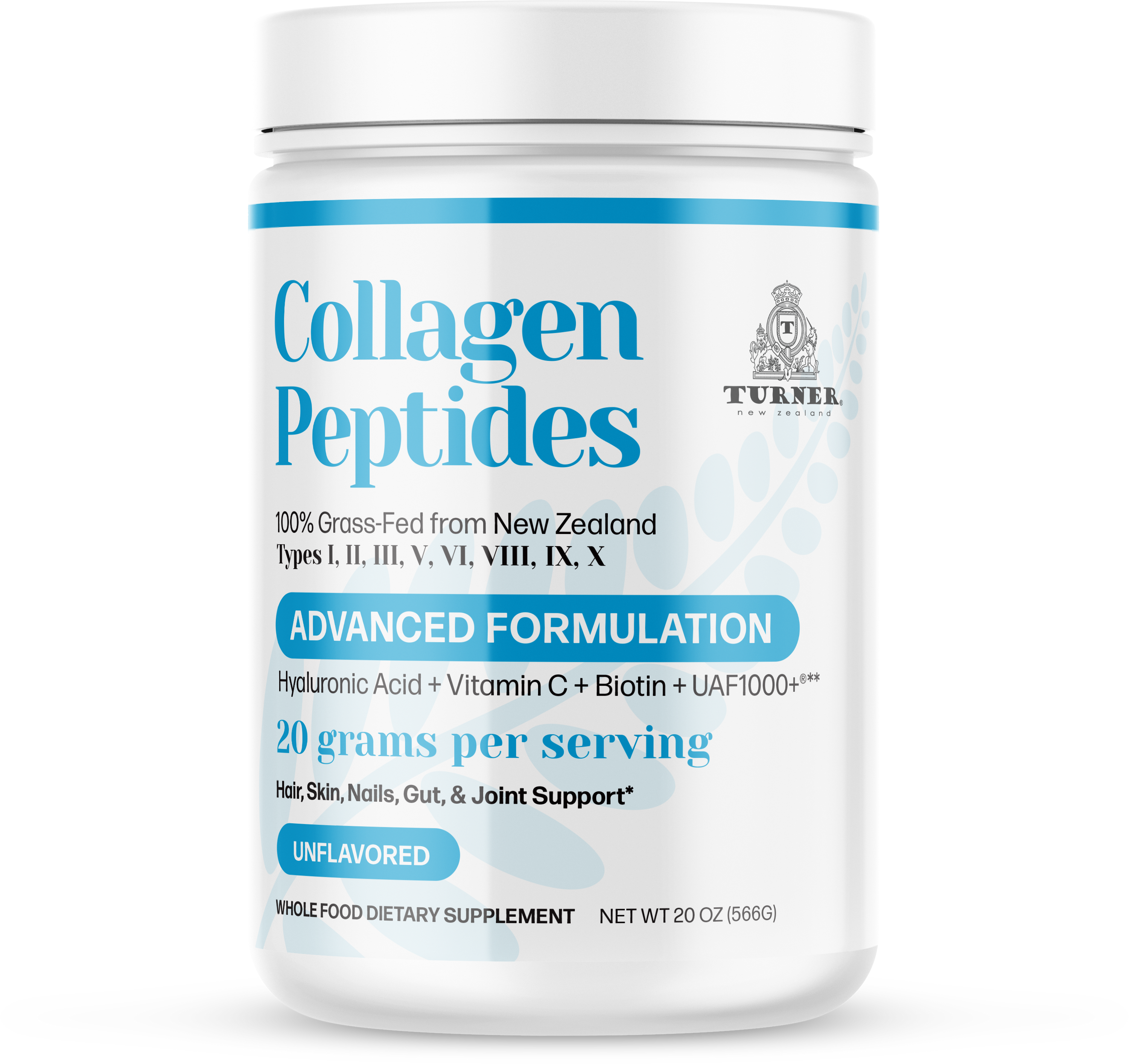 Hydrolyzed collagen peptides from New Zealand pasture-raised beef deliver Types I, II, III, V, VI, VIII, IX & X — the key proteins for skin, bones, cartilage, tendons & ligaments.