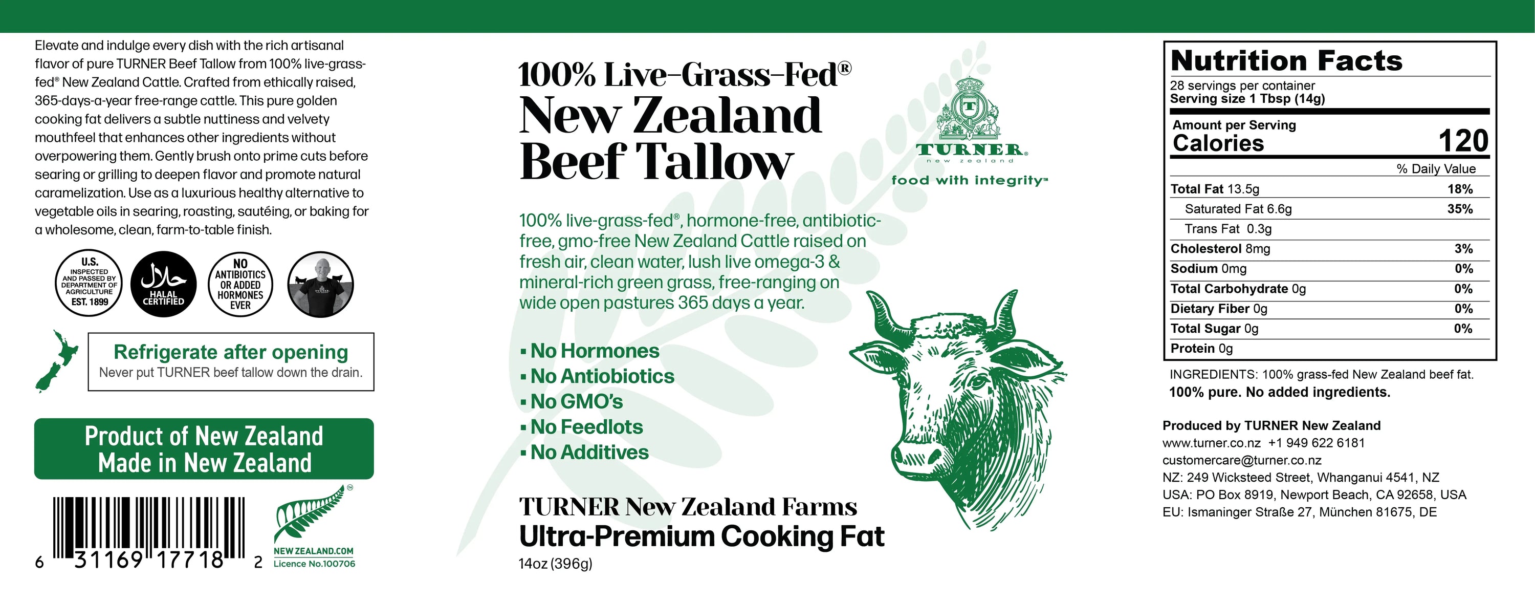 It is a pure, natural cooking fat rendered from 100% live-grass-fed, free-range New Zealand beef. We gently refine the fat without additives, chemicals, or hydrogenation to create a clean, flavorful, nutrient-rich traditional cooking fat.